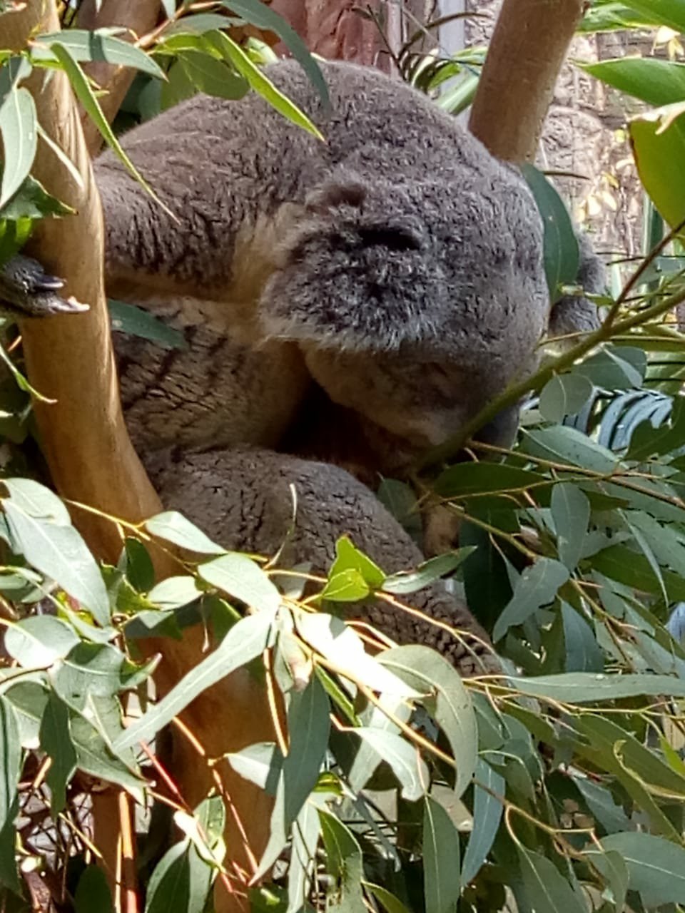 So my sis sends me pics from her trip and this one travels in where my core is: Koala bear burrowing in shade, in foliage, feeding on what Koala knows best,