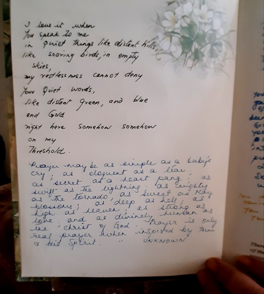 Psychiatry would call the Act of Prayer ‘Self Counsel’. If I were left to self-counsel I’d have turned into a monster, trust me. What happens when we pray, is beyond me, but this happened here, among a whole stack of other changes – both interpersonal/ personal. Anyone want details, please say. Happy to help. idialects@gmail.com