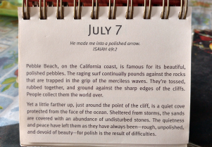 5. The key point is we must develop patience. It will happen in God’s time – not on our schedule. An arrow doesn’t stay polished it has to be touched and shined up on a fairly regular basis to maintain the polish…God’s touch. A nice thought to assist in the waiting time as we rest in God’s quiver.
