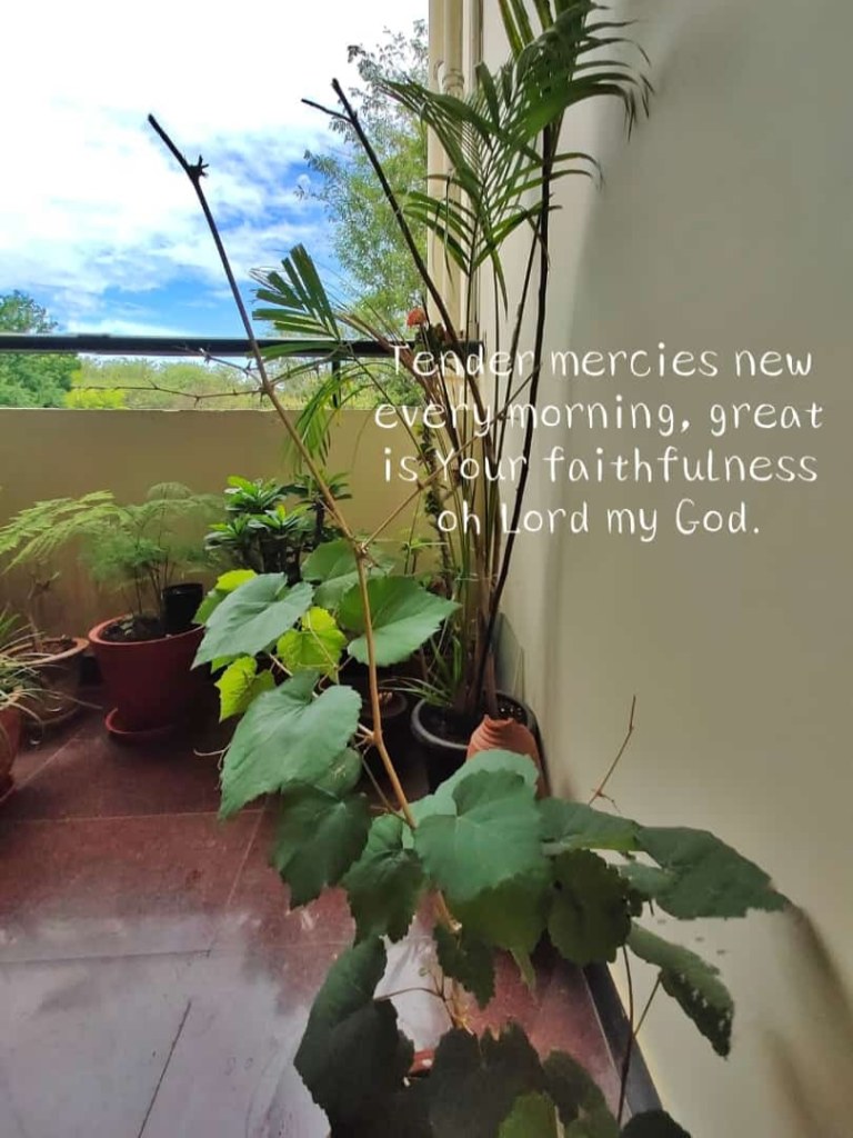 Ahm. Some use for old furniture. (I should neaten this, right). Its like the wilds among Peace Lily, baby Gulmohar, water babies, strawberry (actually), and some names we’ve no clue of but call ‘Meer cats’, ‘Squirrel tail ‘(river grass). There’s Zeezee, Zuzu? <African fuss leaf,