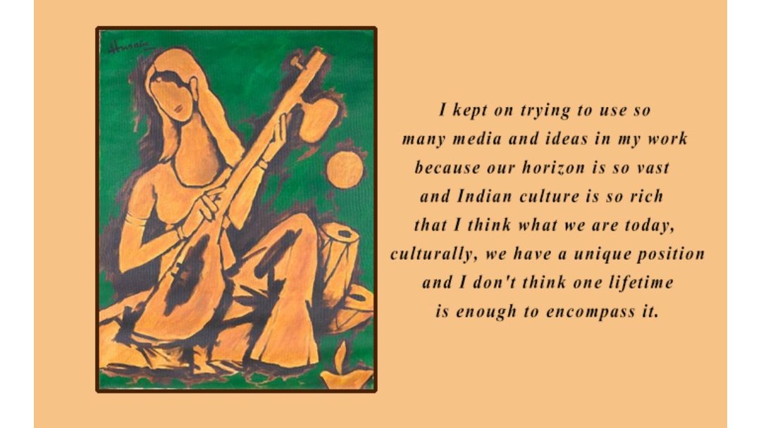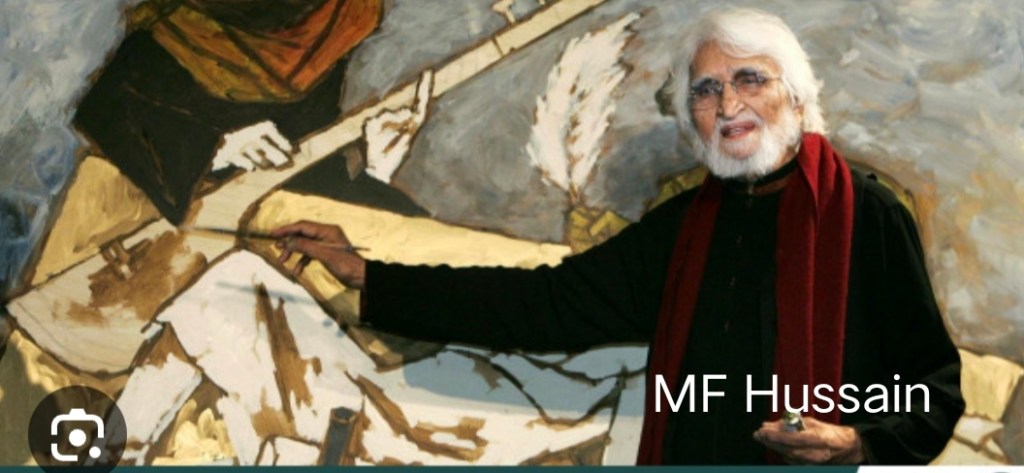 He, MF Hussain, white hair, beard, Kurta pajama, a hush surrounding him as he moved with the self- assured modesty of a celebrity who didn’t ask celebration. I recall noticing the ease with which he moved barefoot, no apology, nor awkwardness. He was comfortable; this man used to be footpath Board painter, he hadn’t changed in a Society that morphed each season..