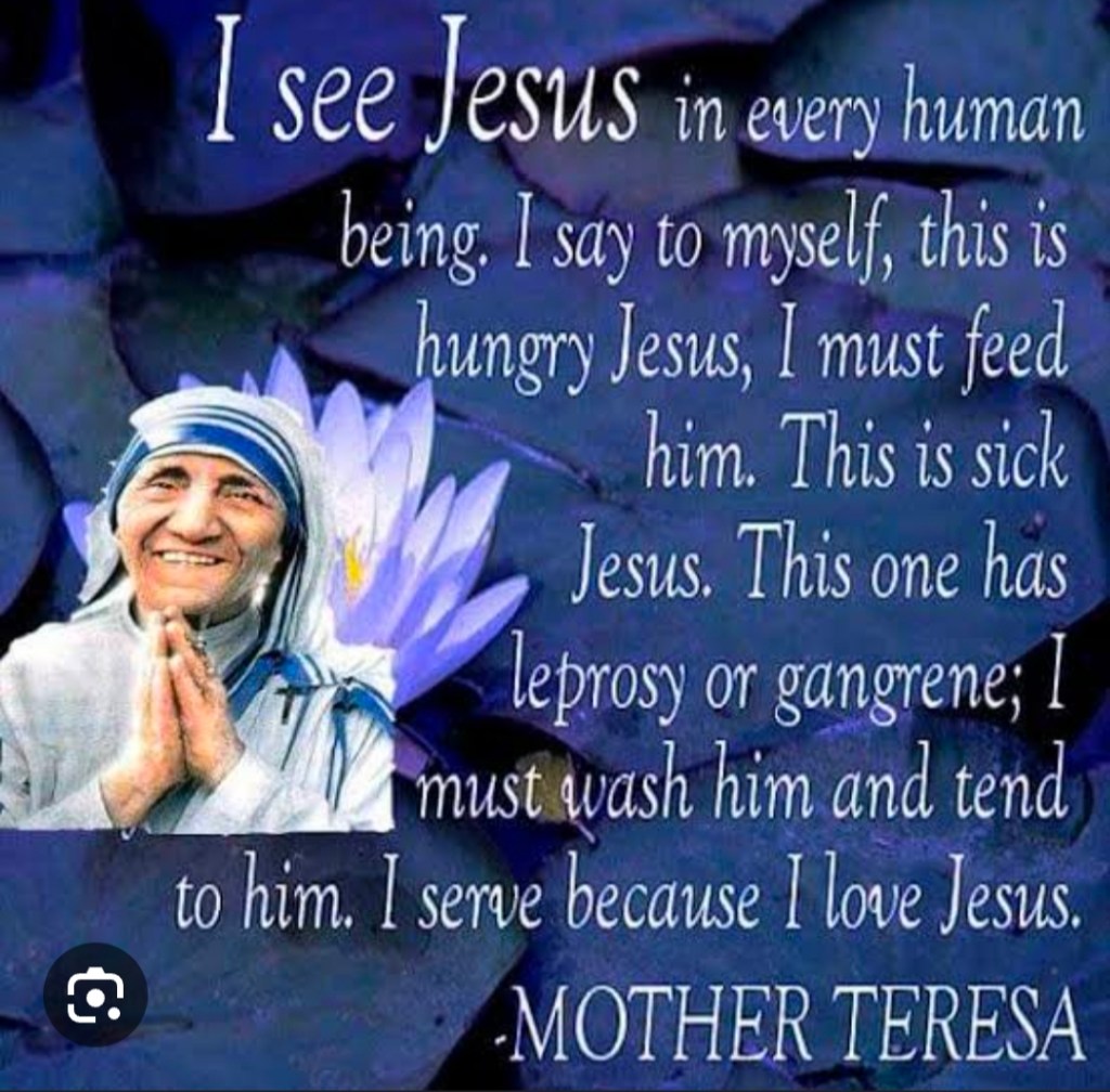 Therese carried lepers home along with hiv babies, abandoned old & young: her face was the map of dry rivers and sunk seas. When she smiled it was a wreath. You stared. I saw her again after we exited the hall. She, in a yellow black taxi, we, in an auto rickshaw. I yelled her name, she waved a tiny palm at me with that smile again.