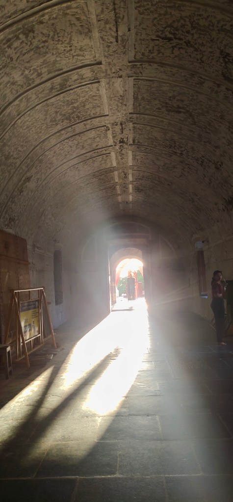Light falls in slabs of Words. Everyone is quiet, not just us, but other visitors. Tiny breath of air breathes through window. Something, Everything is above natural, this place is filled with footprints of centuries. I feel the apostle Thomas, coming up here, over looking an entire city Chennai, here he prayed alone,