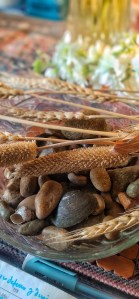 “Wake up child?” The whole place is smiling. Even the river stones we got last week from NJ’s home river: little deep brown and smooth memoirs of tides. Of seasonings.