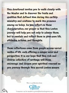 Below, is my Page 39, of the Devotional: posted with permission. I’d love for you to get all 40! These Writings are honest-to-goodness masterpiece Reflections based on the Person of Christ, as seen by contemporary people like you and me, from all walks of Life. (Do check below for where you can grab your own online read. And let us know if it wasn’t worth it!)