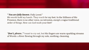 Christ wouldn’t leave. Said He knew how I hurt, but that I must absolutely love this person as I love myself.